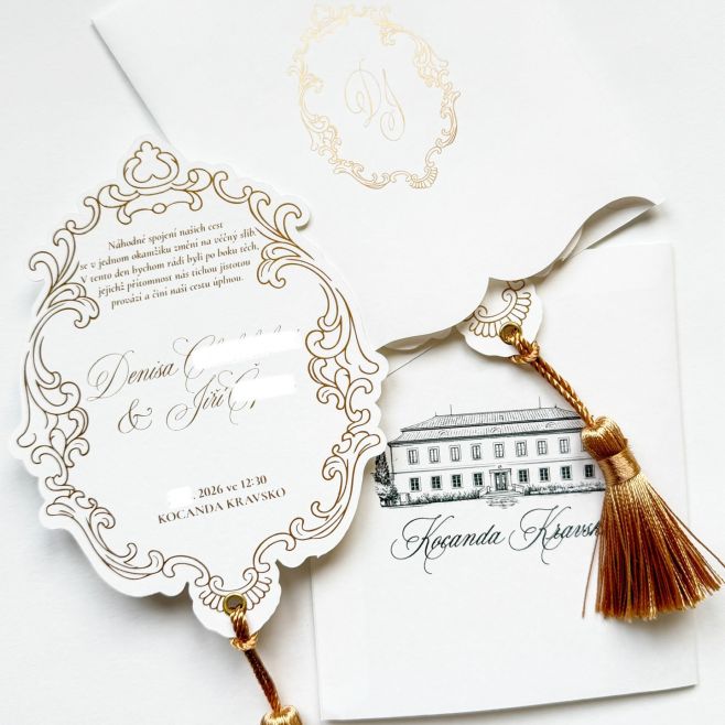 K dispozici jsou také sladěné „save the date“ kartičky, vnitřní výplně obálek, adresování a voskové pečetě pro dokonalý dojem.